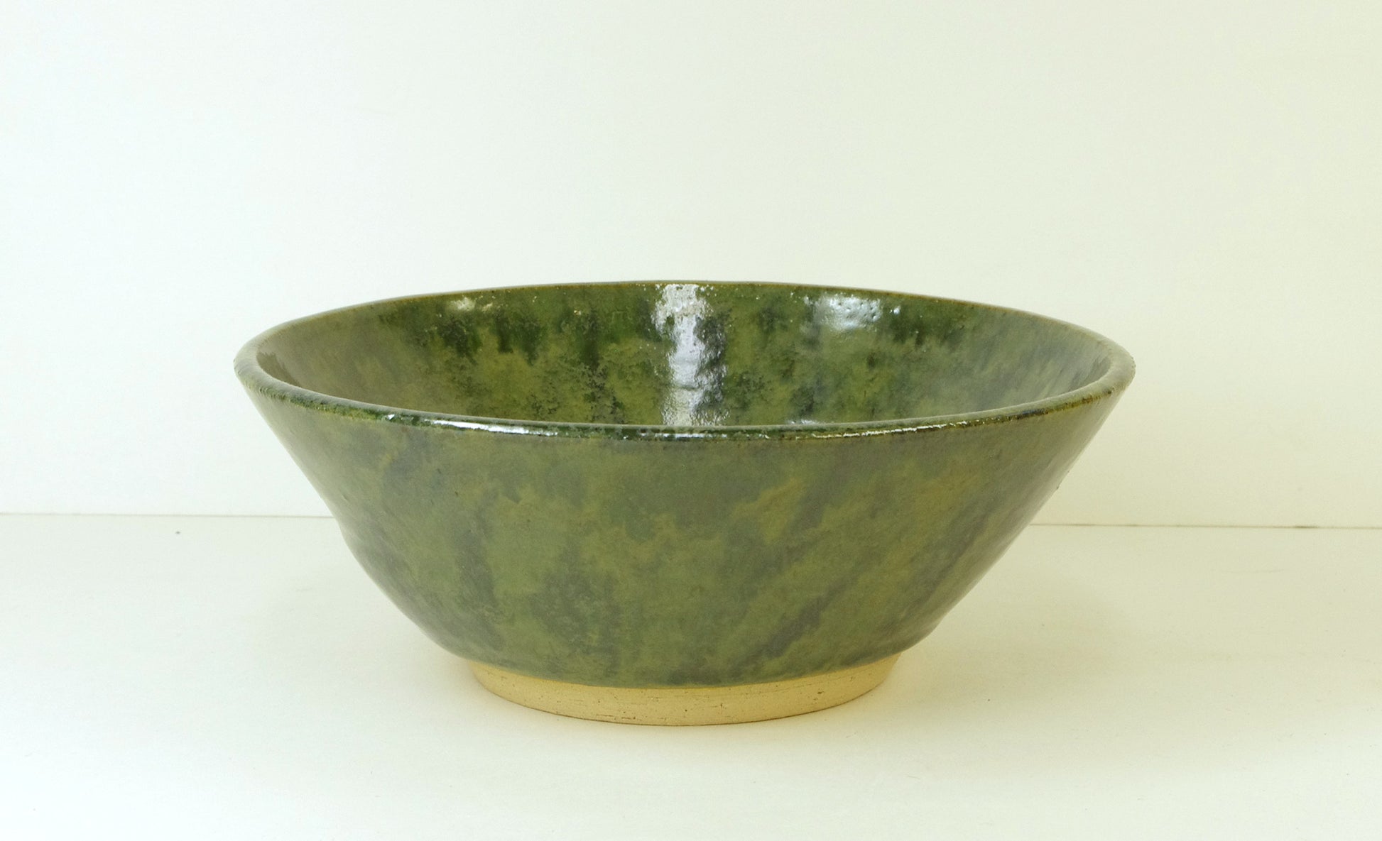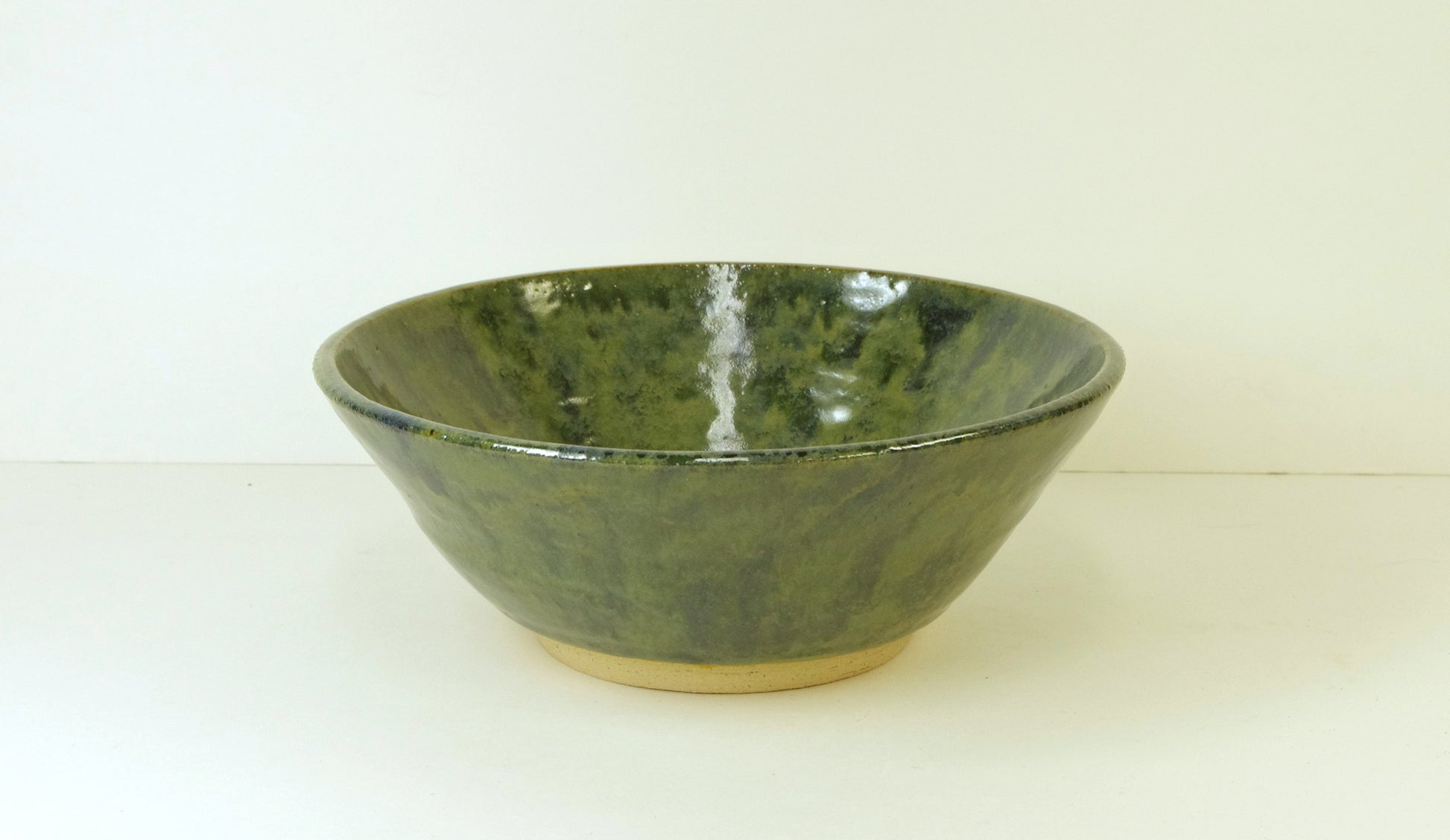 The vase is glazed with a gloss dark emerald green, light greens and blues.