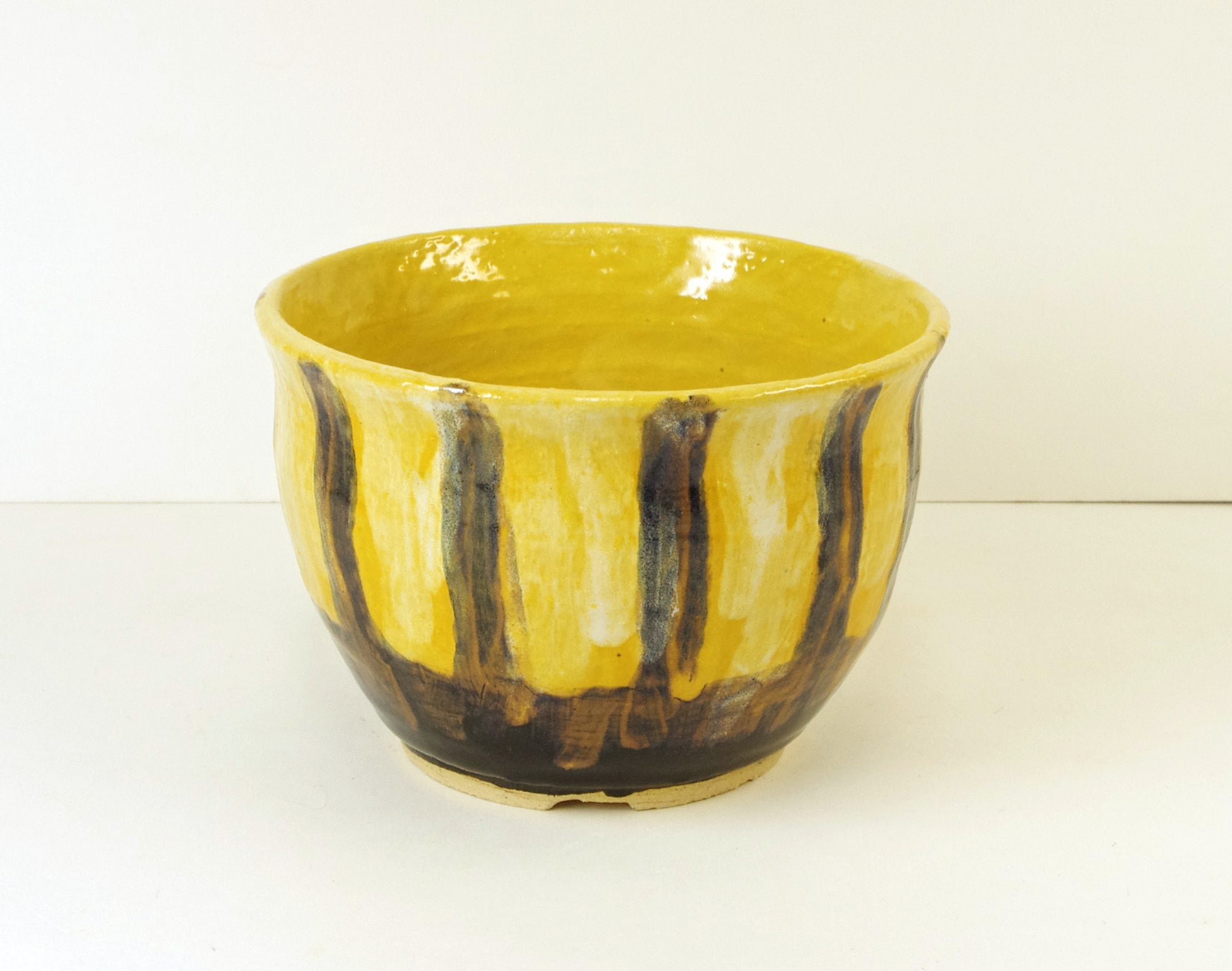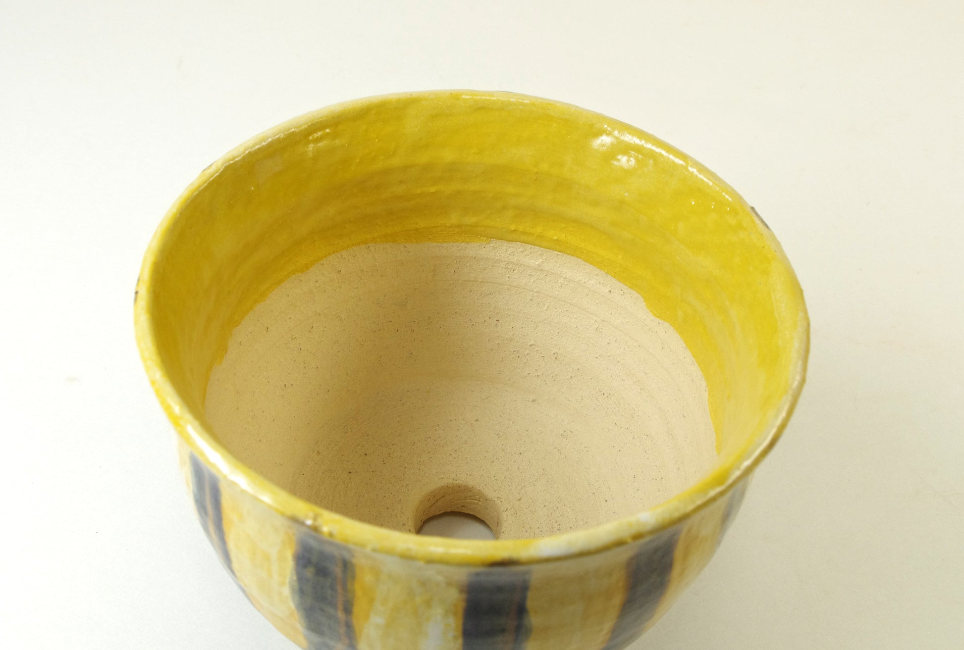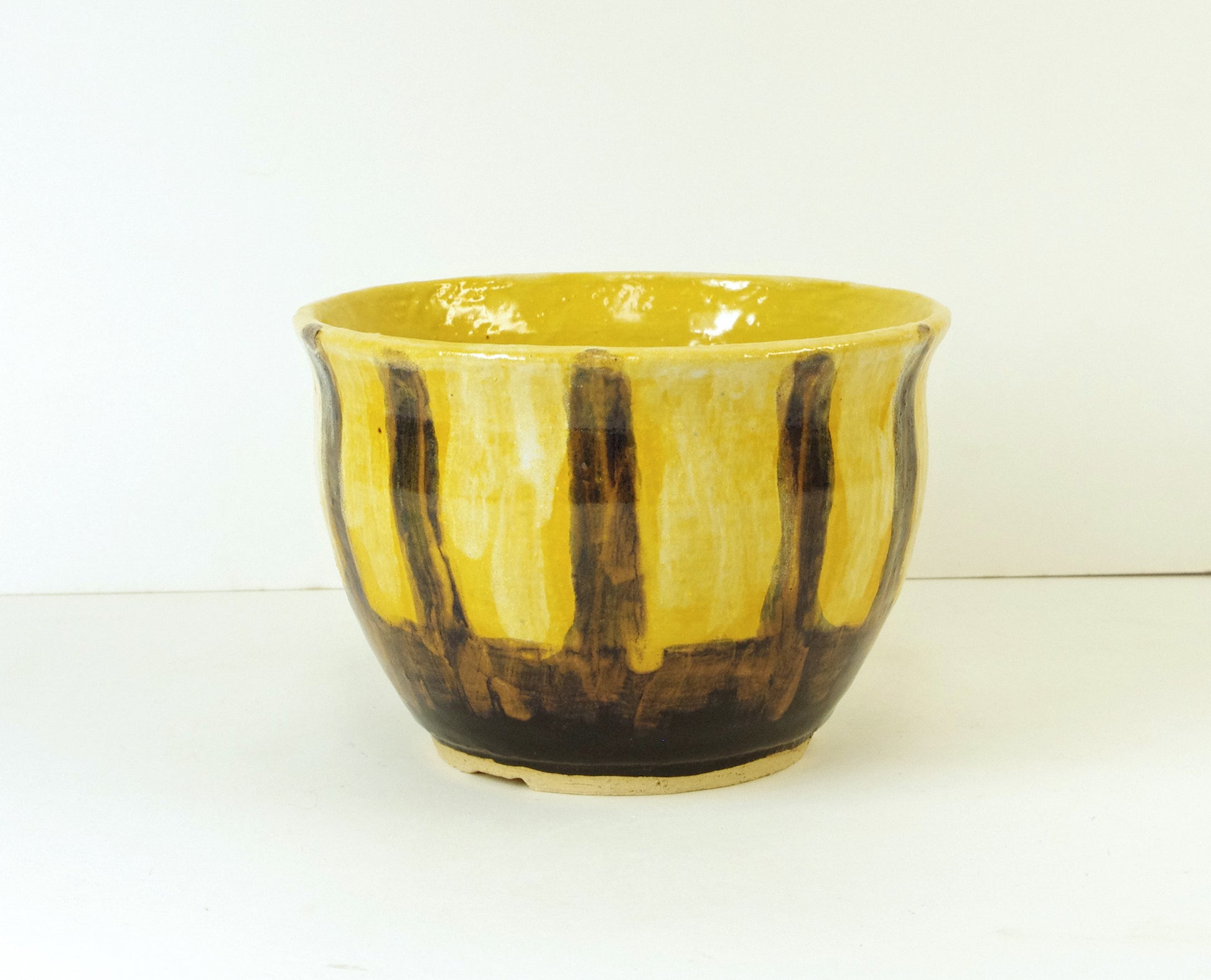 2109, Hand Thrown Stoneware Cactus Pot, 4 1/2 x 3 1/8, Yellows, Browns, Black
