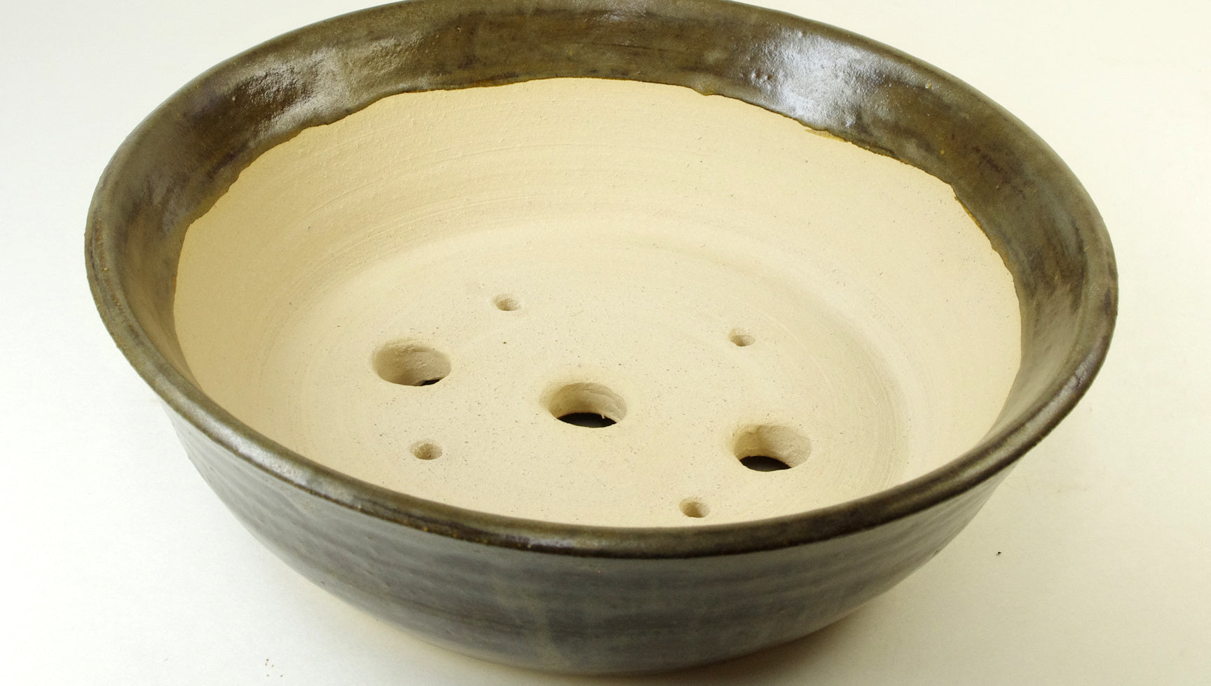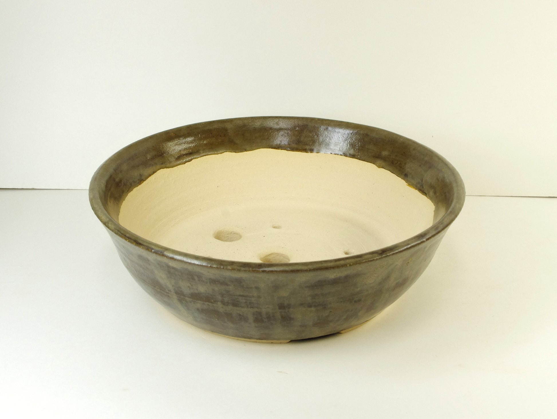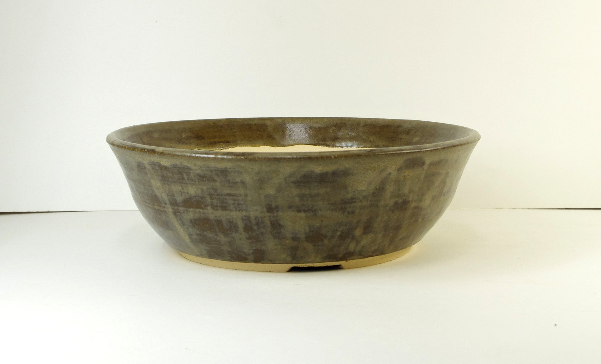 Item 2114, Hand Thrown Stoneware Bonsai Pot, With Extra Wire Holes, 8 3/4 x 2 3/4