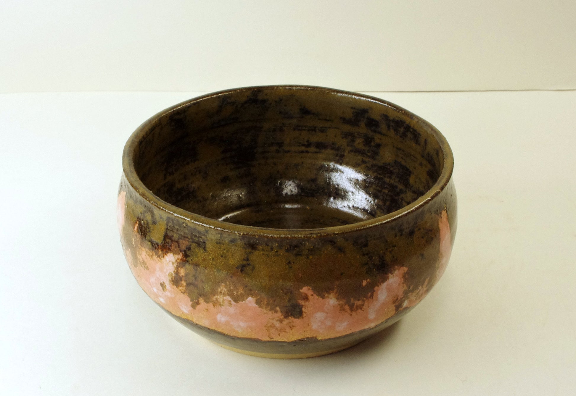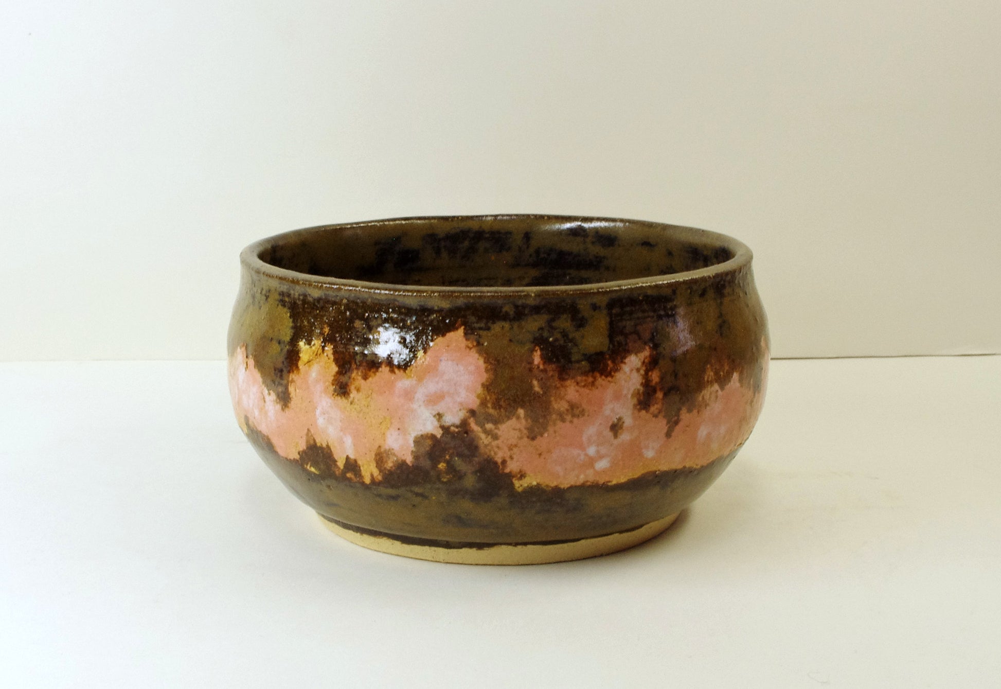 2118, Hand Thrown Stoneware Ikebana Vase, 6 x 3 inches, Brown, Pink