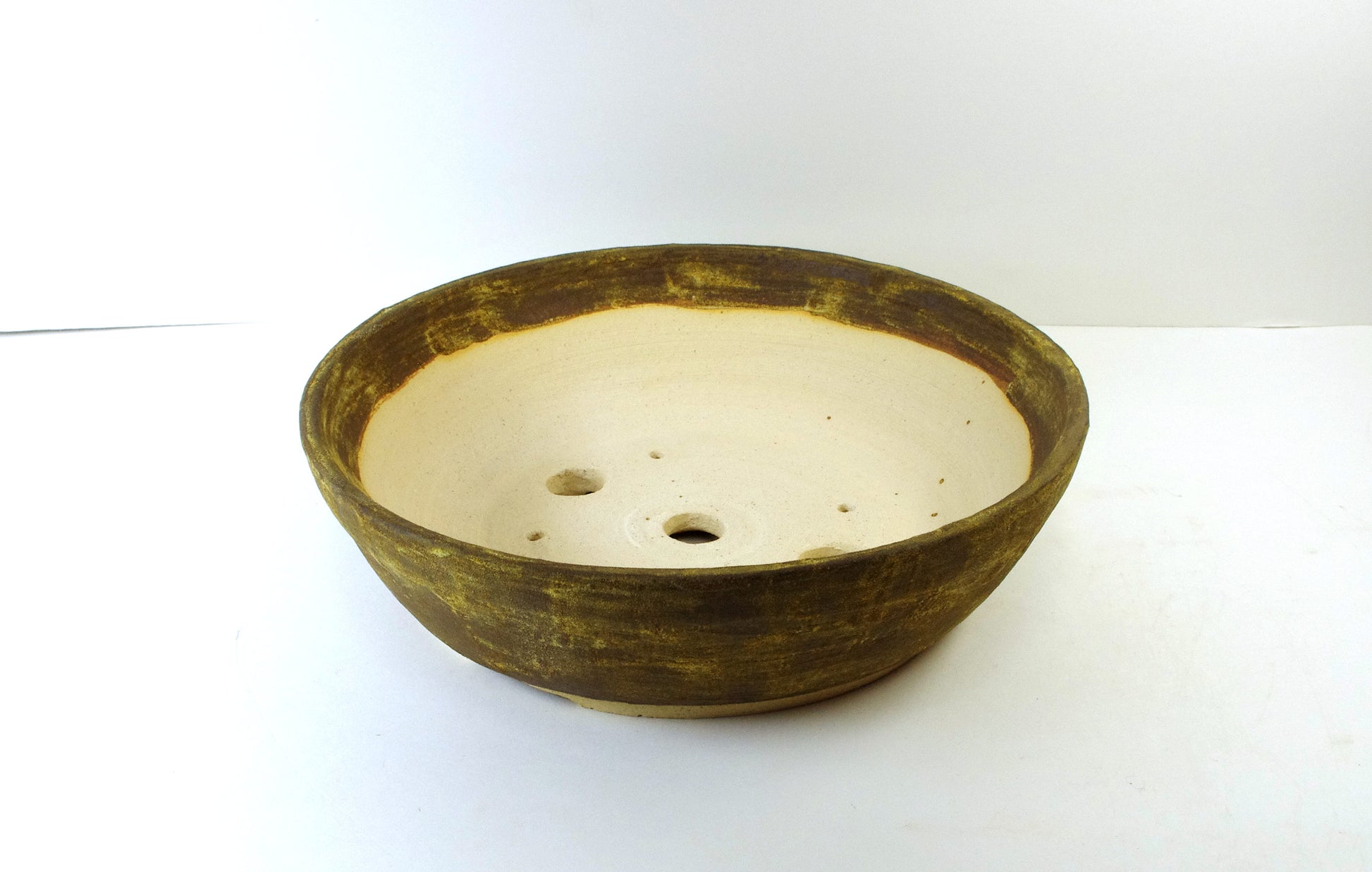 2119, Hand Thrown Stoneware Bonsai Pot, Matte Browns, With Extra Wire Holes, 8 3/4 x 2 1/2