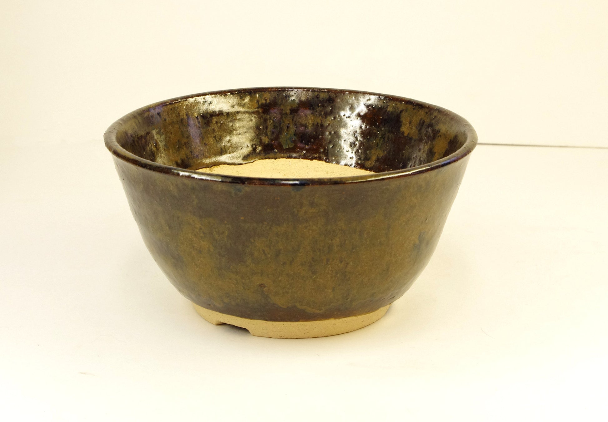 12137 Hand Thrown Stoneware Bonsai Pot, Browns, 5 3/4 x 2 7/8