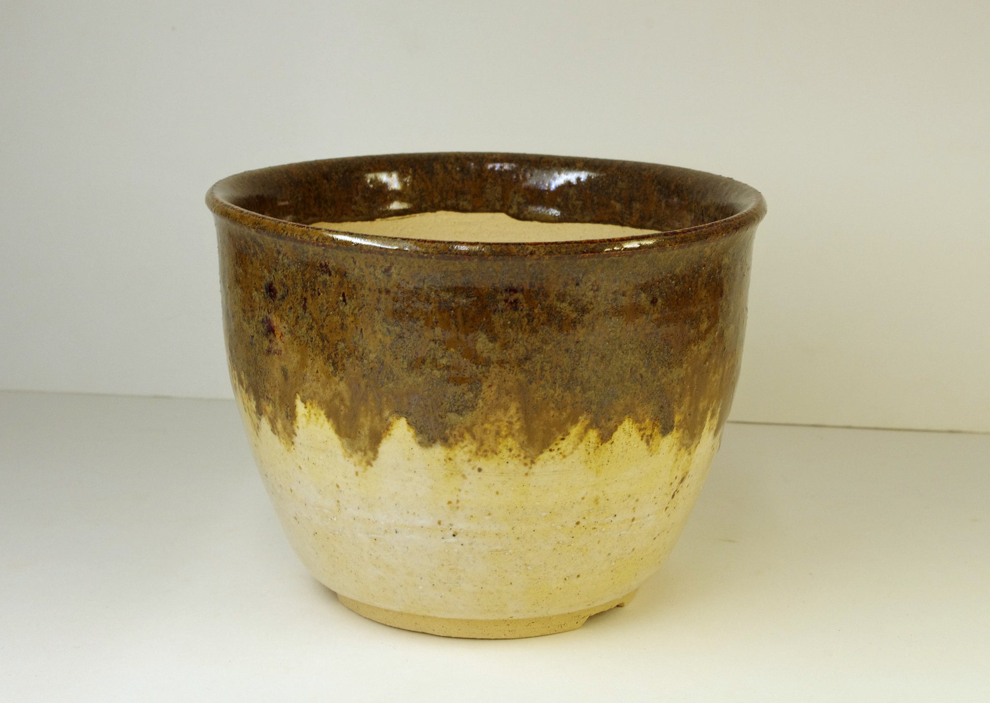 2149, Hand Thrown Stoneware Bonsai Pot, Extra Wire Holes, Browns, Tans, 6 1/8 x 4 1/2