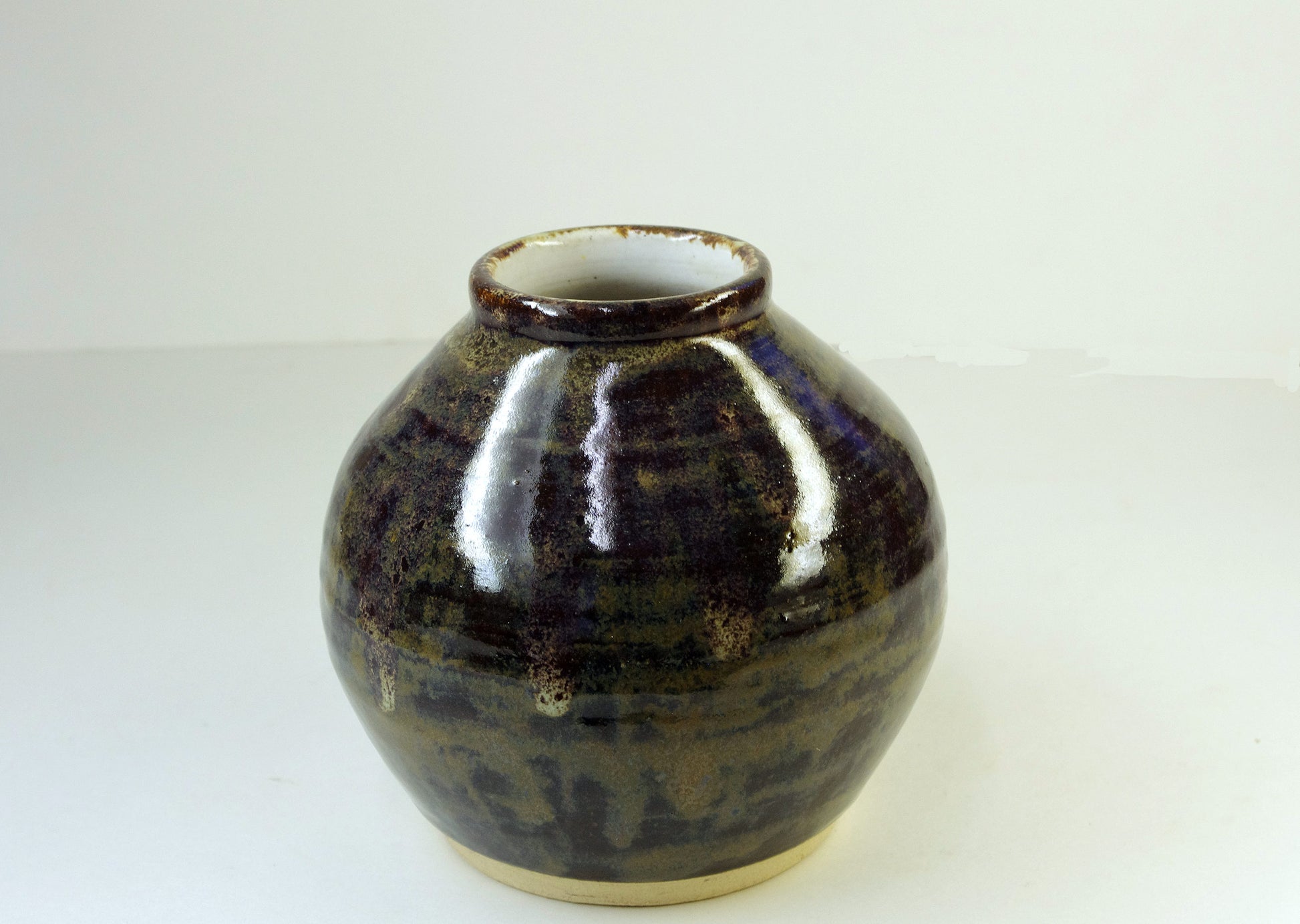 Item 2153, Hand Thrown Stoneware Vase, 1 7/8 (at rim) x 5 inches wide x 5 inches tall.