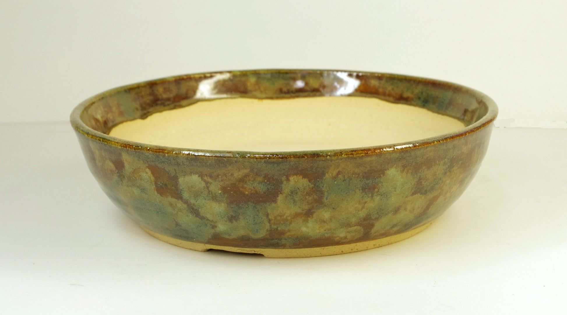 2160 Hand Thrown Bonsai Pot, Browns, Greens, 8x2