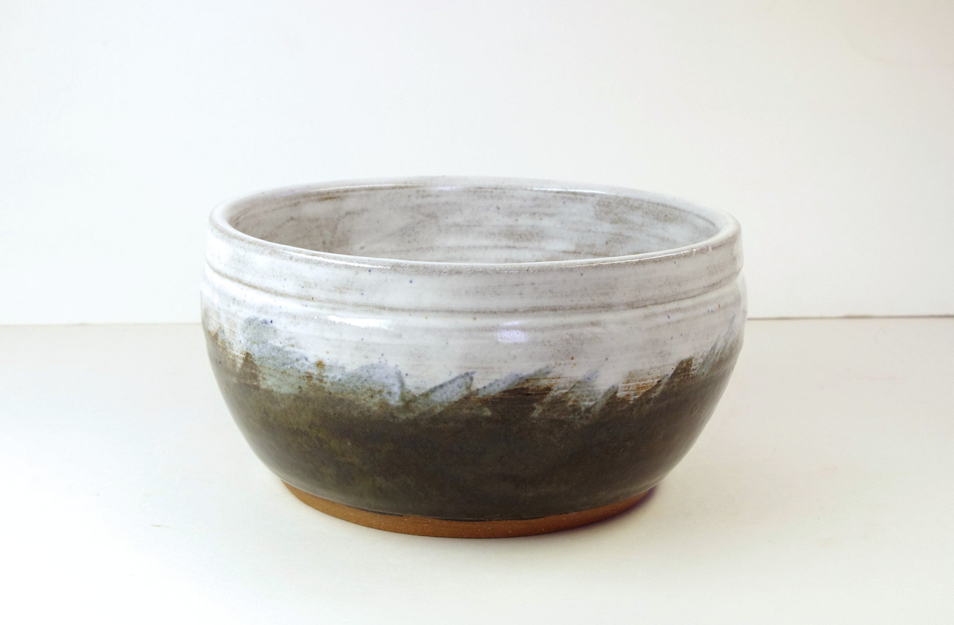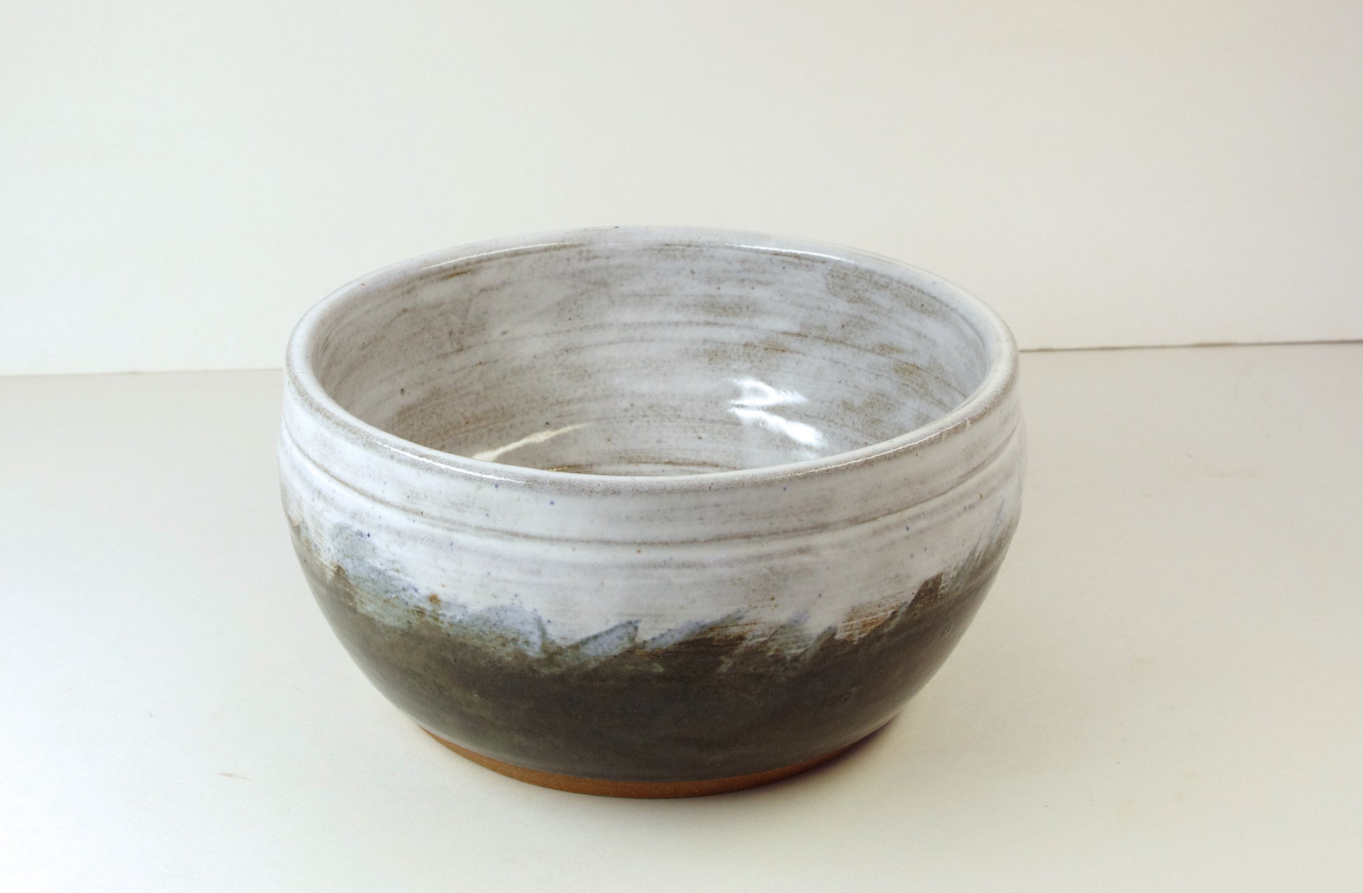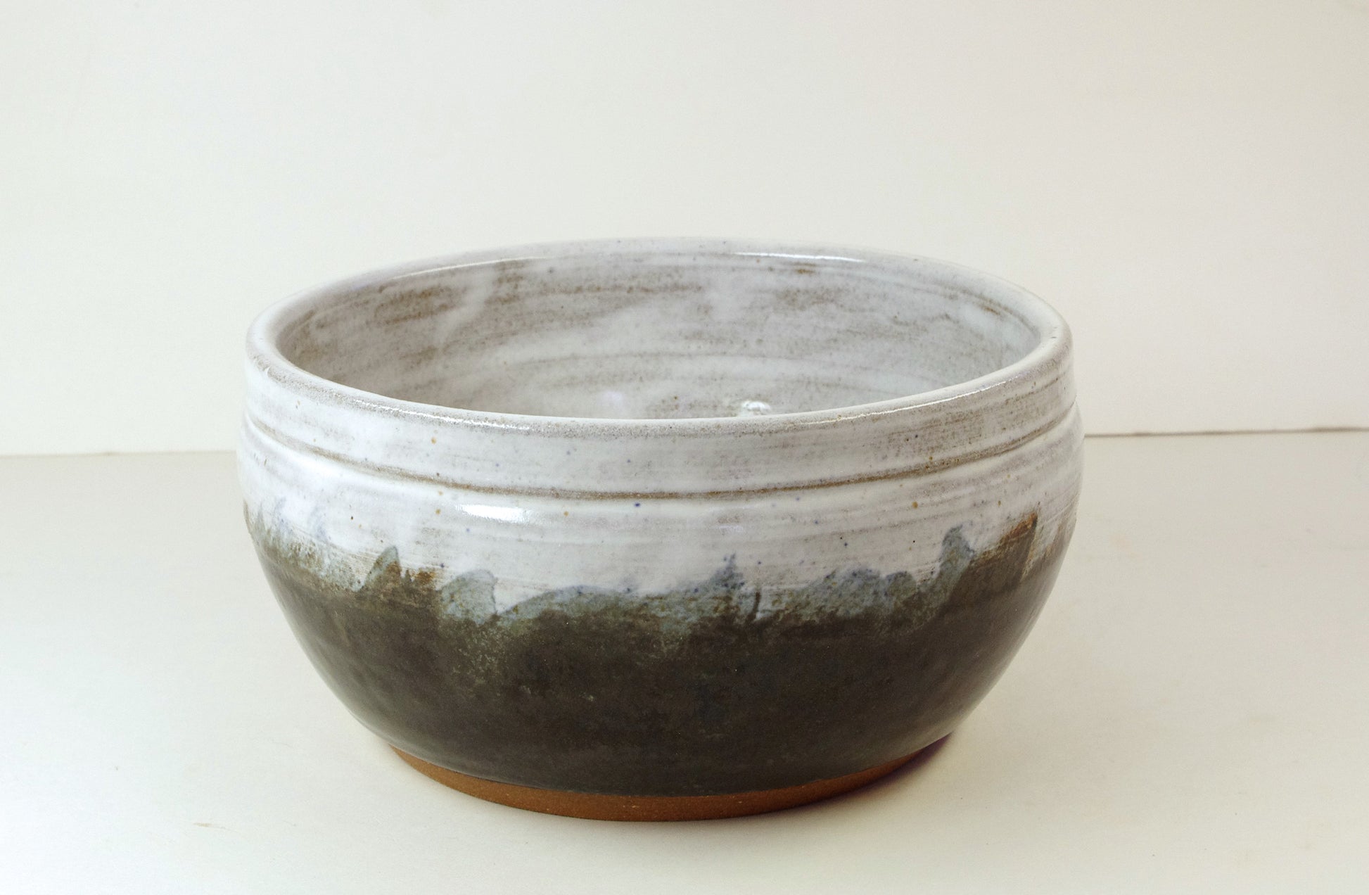 2051, Hand Thrown Dog Bowl, White, Blacks, Medium