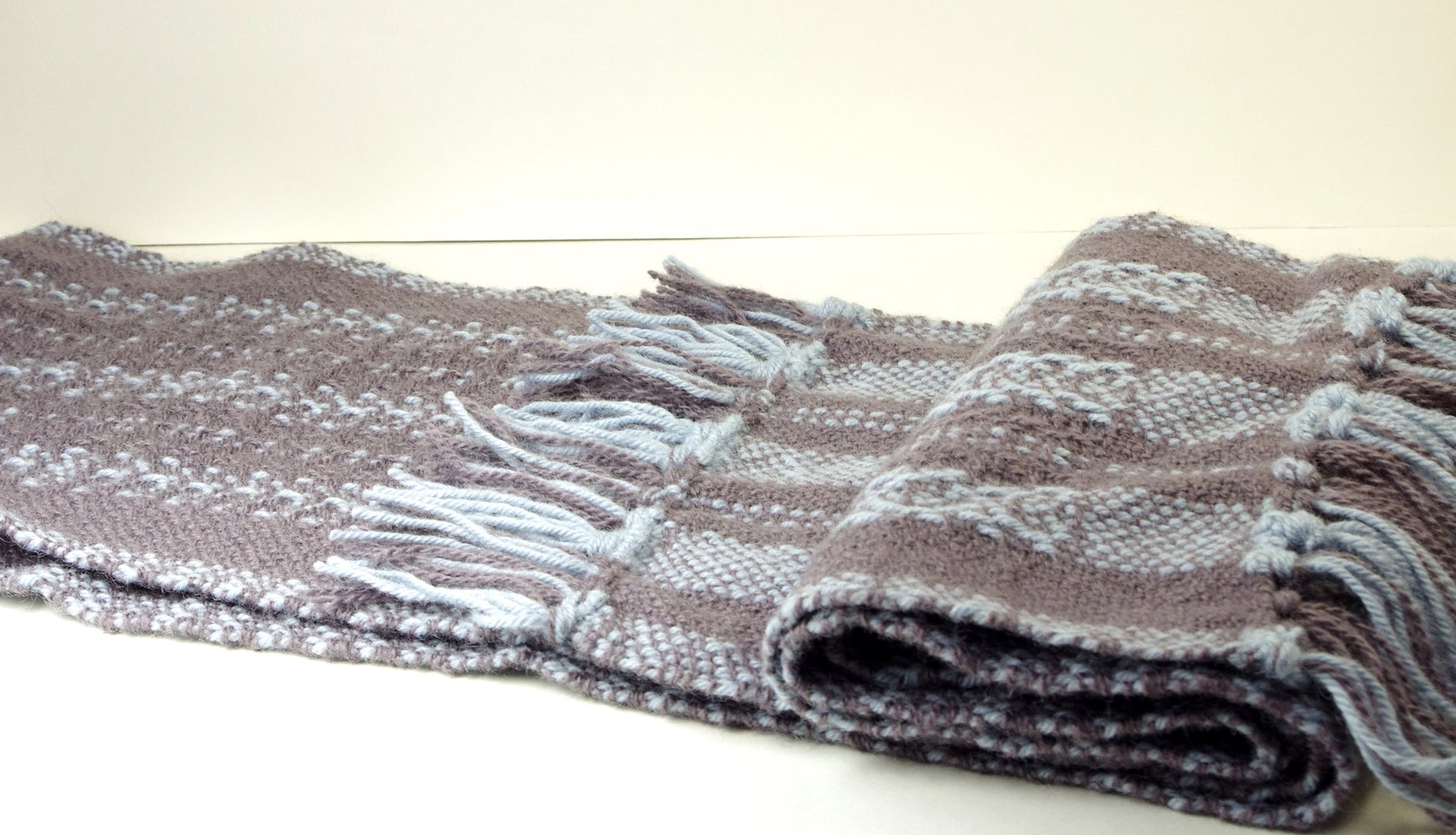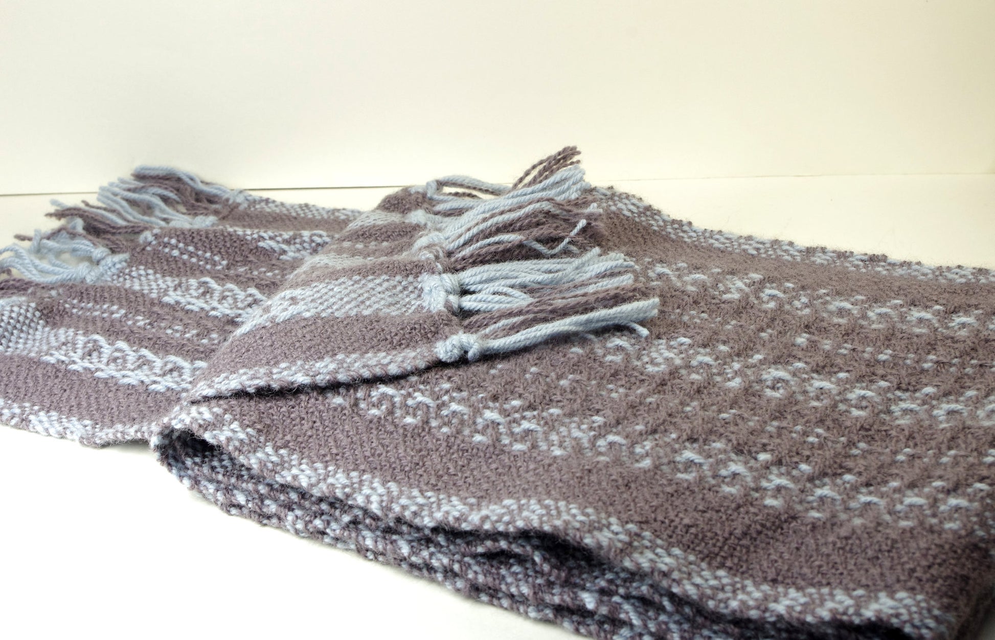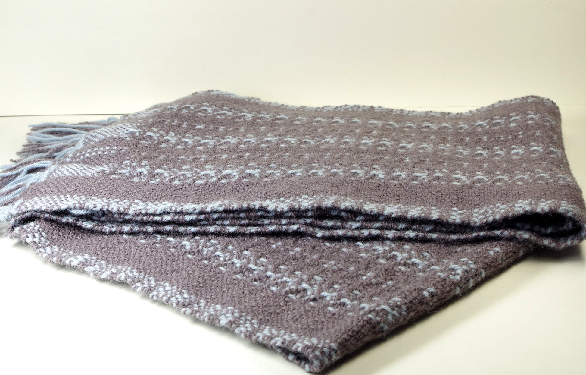 Wool Scarf, Dusty Plum and Blue, Handwoven